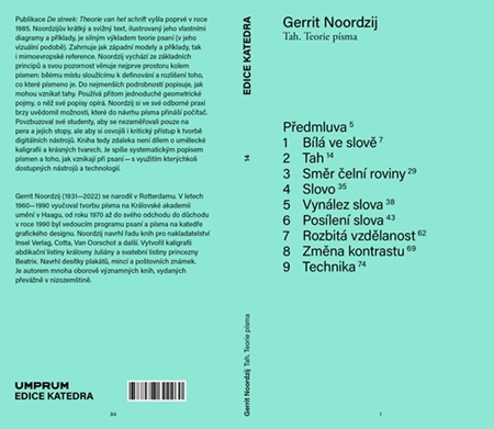 Publikace De streek: Theorie van het schrift vyšla poprvé v roce 1985. Noordzijův krátký a svižný text, ilustrovaný jeho vlastními diagramy a příklady, je silným výkladem teorie psaní (v jeho vizuální podobě). Zahrnuje jak západní modely a příklady, tak i mimoevropské reference. Noordzij vychází ze základních principů a svou pozornost věnuje nejprve prostoru kolem písmen: bílému místu, které slouží k definování a rozlišení toho, co které písmeno je. Do nejmenších podrobností popisuje, jak mohou vznikat tahy. Používá přitom jednoduché geometrické pojmy, o které své popisy opírá. Noordzij si ve své odborné praxi brzy uvědomil možnosti, které do návrhu písma přináší počítač. Povzbuzoval své studenty, aby se nezaměřovali pouze na pera a jejich stopy, ale aby si osvojili i kritický přístup k tvorbě digitálních nástrojů. Kniha tedy zdaleka není dílem o umělecké kaligrafii a krásných tvarech. Je spíše systematickým popisem písmen a toho, jak vznikají při psaní – s využitím kterýchkoli dostupných nástrojů a technologií. Překlad z nizozemštiny Magda de Bruin Hüblová. Grafika Kateřina Šuterová.
